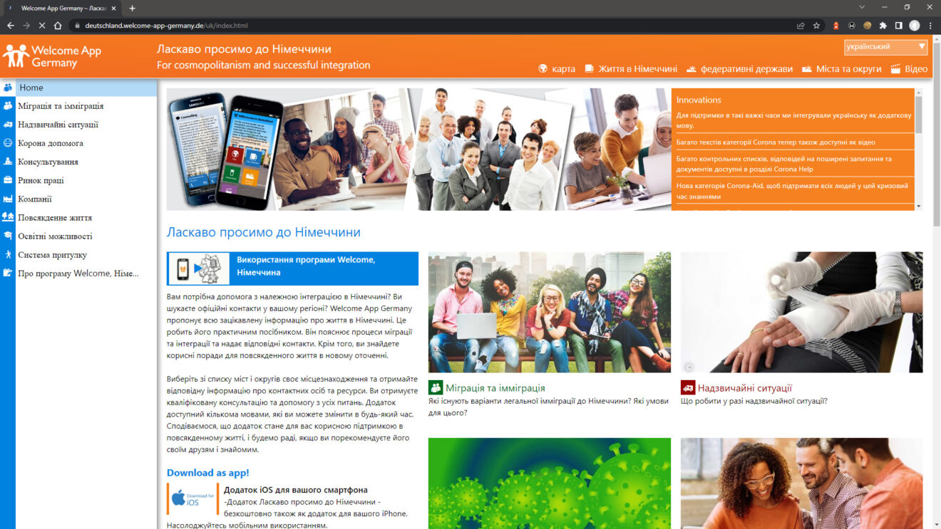In dieser furchtbaren Situation möchten wir erneut helfen und haben die Welcome App Germany daher schnell um die Sprache Ukrainisch erweitert. In ihrer Sprache möchten wir die aus der Ukraine geflüchteten Menschen beim Ankommen und Leben in Deutschland unterstützen mit unserer kostenfreien Welcome App Germany.