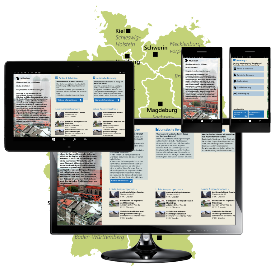 Wir helfen Städten und Landkreisen dabei, innovativ und menschenfreundlich zu agieren durch eine individuelle regionale App und Webseite der Welcome App.